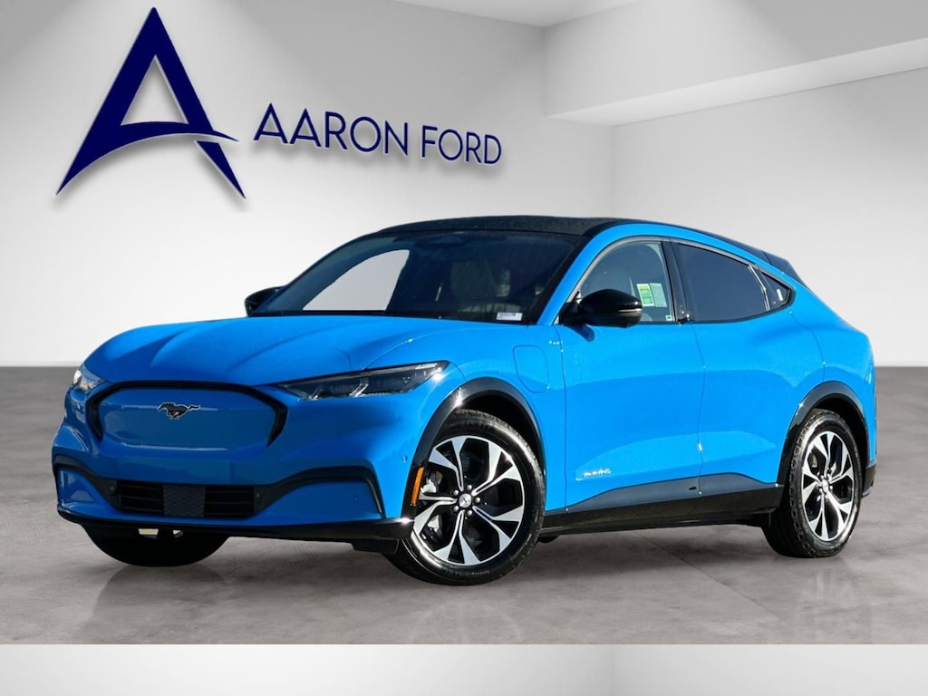 Discover the exhilarating 2023 Ford Mustang Mach-E Premium, a cutting-edge electric vehicle that seamlessly blends performance, style, and advanced technology. This stunning blue Mustang Mach-E delivers an exceptional driving experience with its powerful electric motor, all-wheel-drive capabilities, and impressive efficiency.