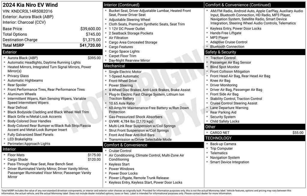 Elevate your driving experience with the captivating 2024 Kia Niro EV Wind. This all-electric marvel boasts a striking Aurora Black exterior, seamlessly blending style and sustainability. With its impressive 126 MPGe in the city and 101 MPGe on the highway, this vehicle not only reduces your carbon footprint but also delivers exceptional efficiency to power your adventures.